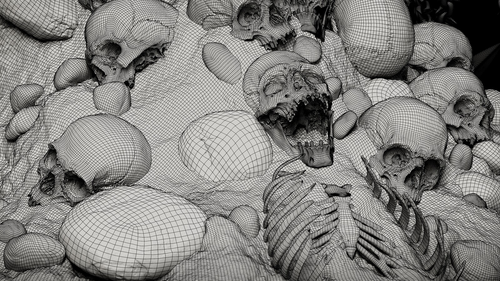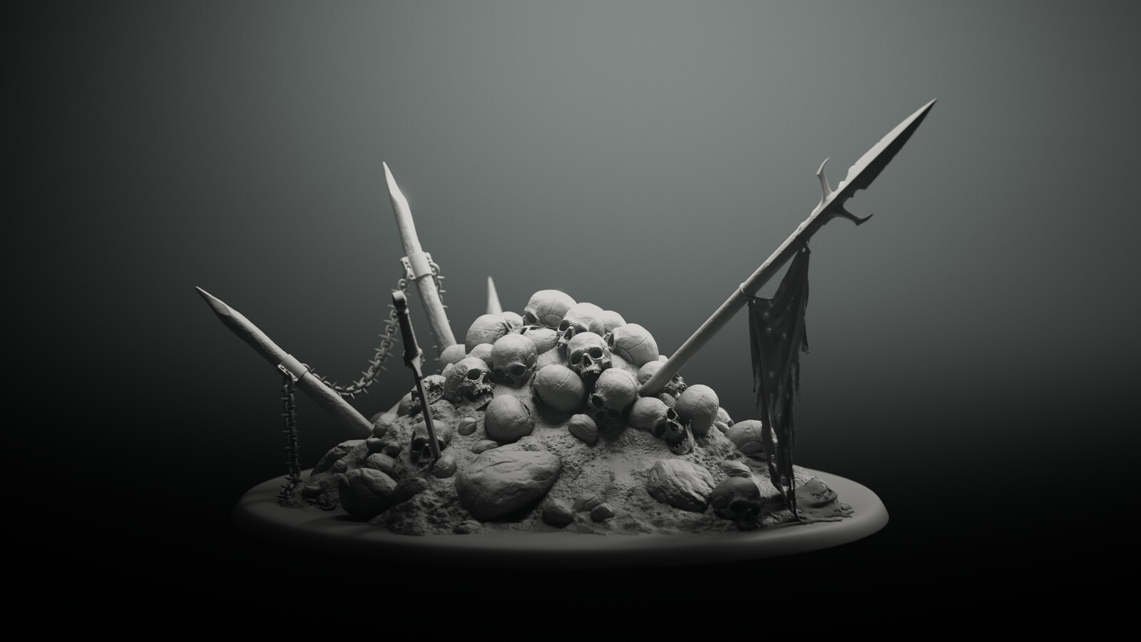 Everything was low poly modeled in Maya then imported into ZBrush where I refined the model through progressively adding sub-divisions which resulted in the high res sculpt; once I was happy with the sculpt, the model was reimported back into Maya to have adjust the UV's to better fit with the updated model; Once this was done the model was then reimported back into ZBrush to update the high res sculpts UV maps. Once this was done I was able to make down all of the high res details down into usable maps.